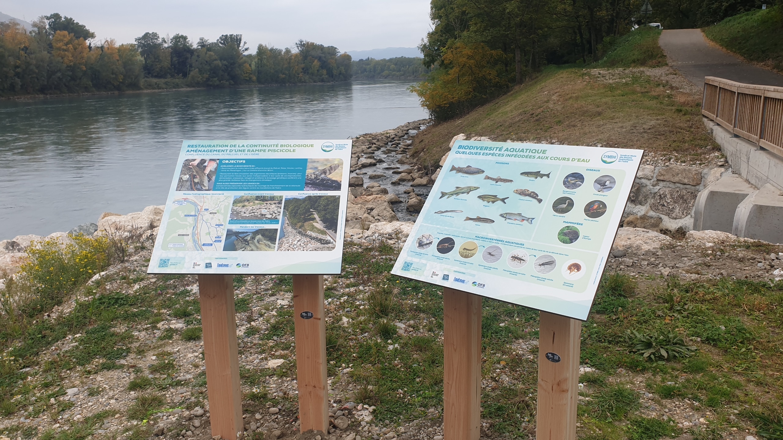 Afin d’accompagner le projet et d’en faciliter la compréhension par le plus grand nombre, des panneaux pédagogiques ont été installés sur site. Ils présentent les enjeux de la continuité écologique, les principes des aménagements réalisés et les bénéfices attendus pour les milieux aquatiques.